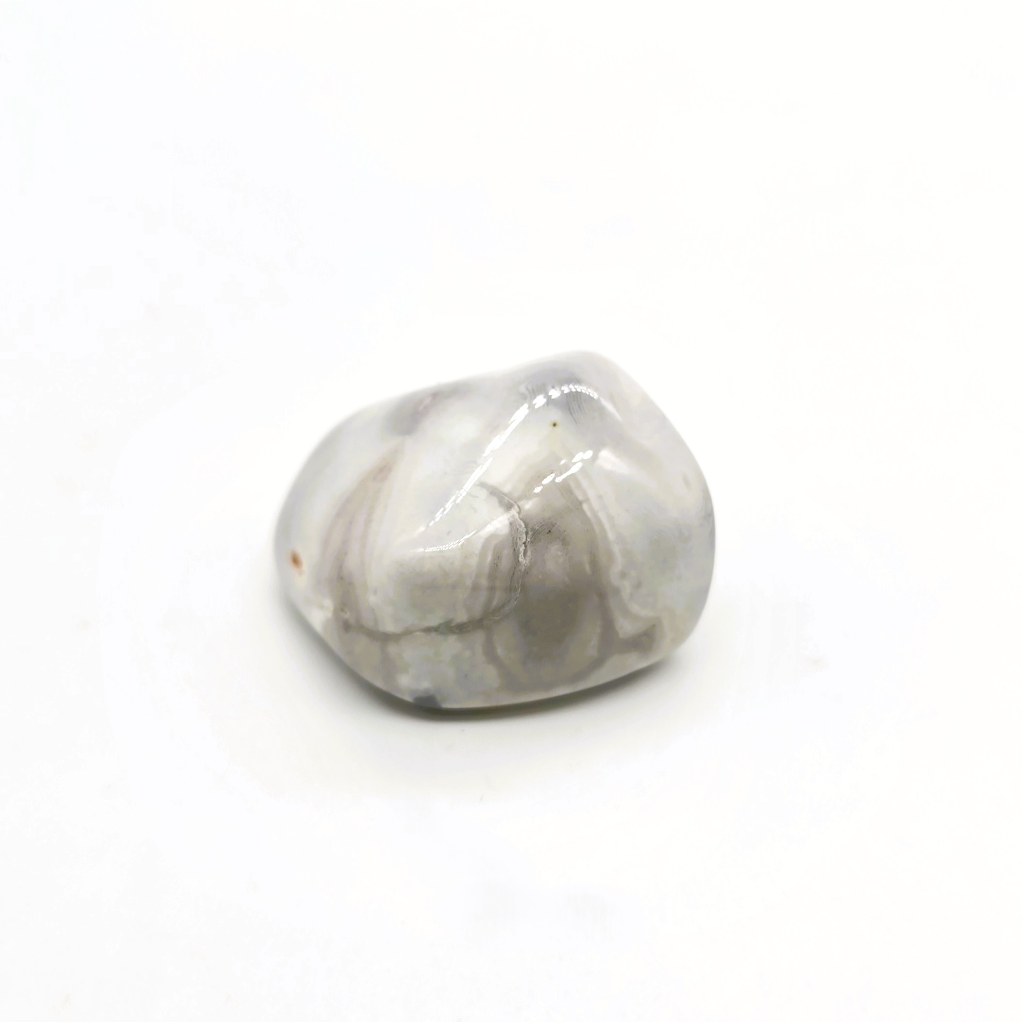 In cristalloterapia, l’agata Botswana grigia è associata al chakra della radice: infonde stabilità ed aiuta a trovare il proprio valore interiore. È una pietra che aiuta a portare luce e pulizia sia spirituale che fisica.