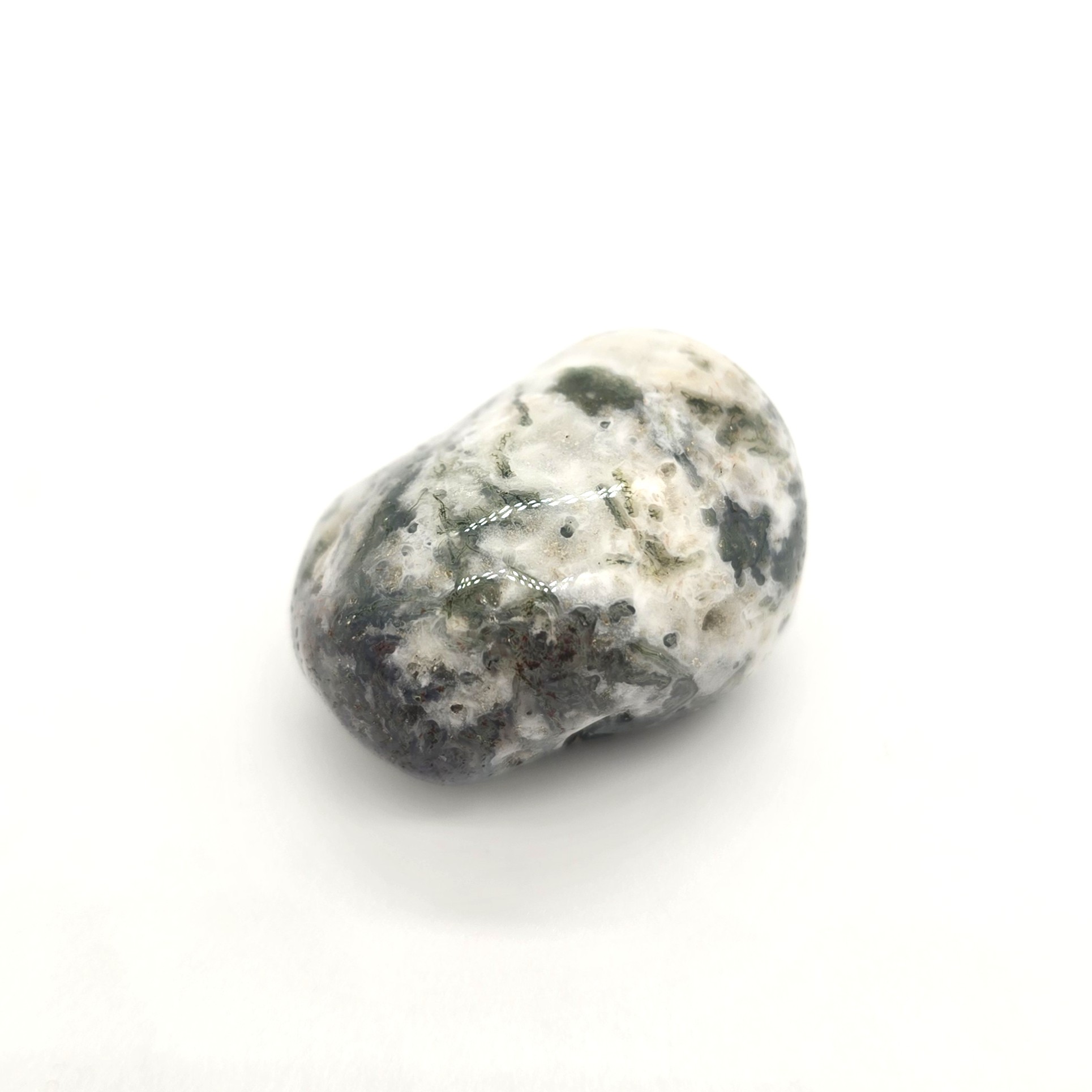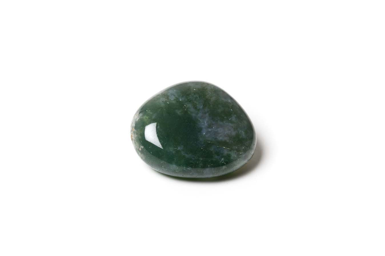 Nota anche come agata arborea, questa pietra presenta inclusioni dendritiche di clorite verde su fondo bianco e opaco. Si è formata 65 milioni di anni fa durante l’attività vulcanica dell’altopiano del Deccan.
